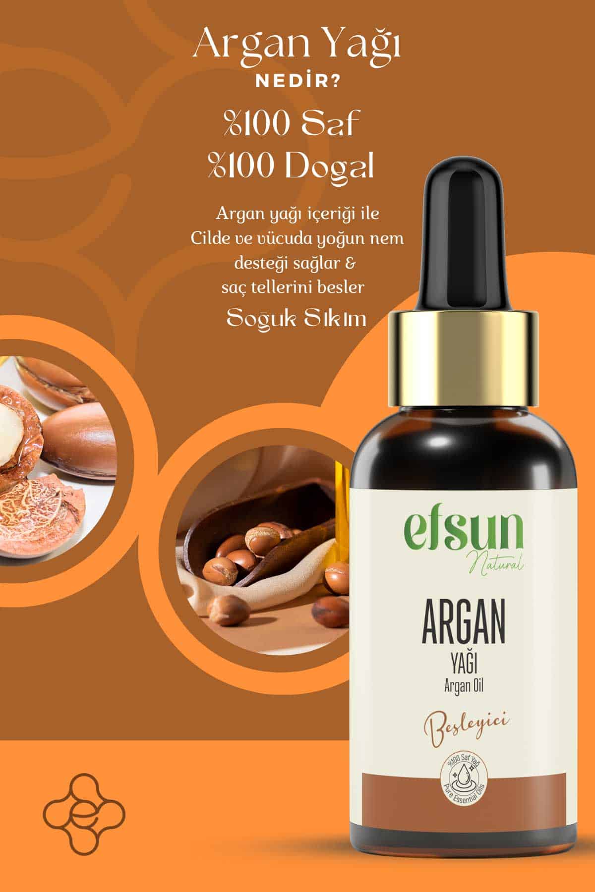 Fas’a özgü argan ağacının meyvesinden soğuk pres yöntemiyle elde edilen doğal bir yağdır. Bu yöntem, yağın besleyici özelliklerini korur ve cilt, saç ile tırnak bakımında etkili olmasını sağlar.