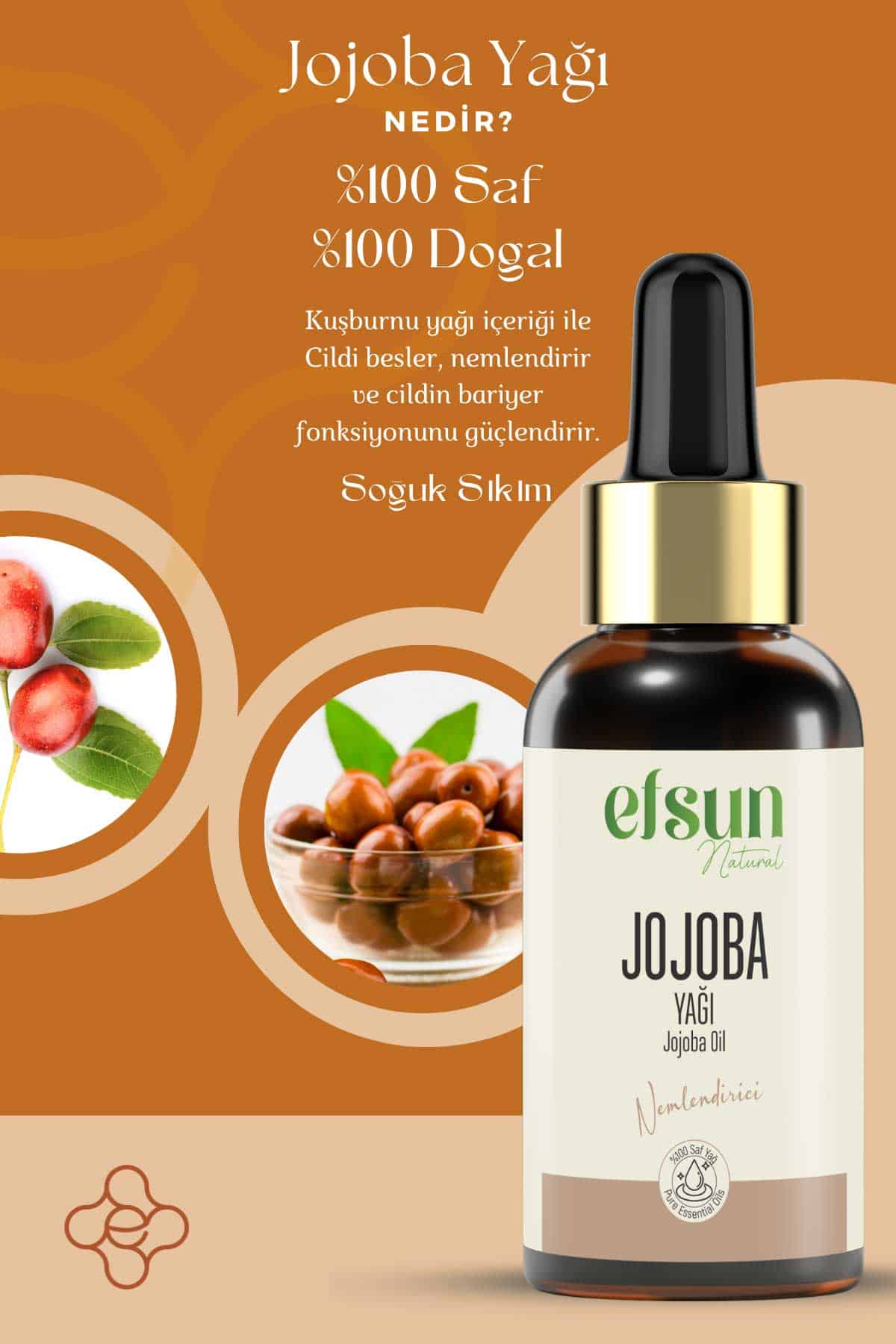 Jojoba yağı, cildin doğal yağ yapısıyla son derece uyumlu olan hafif ve emilebilir bir bakım yağıdır. Sebum dengesini destekleyici özelliği sayesinde özellikle yağlı ve akneye yatkın ciltler için tercih edilir. Gözenekleri tıkamadan nem sağlar, bu sayede hem kuruluk hissini azaltır hem de cilt yüzeyinin dengeli ve canlı görünmesine katkıda bulunur.