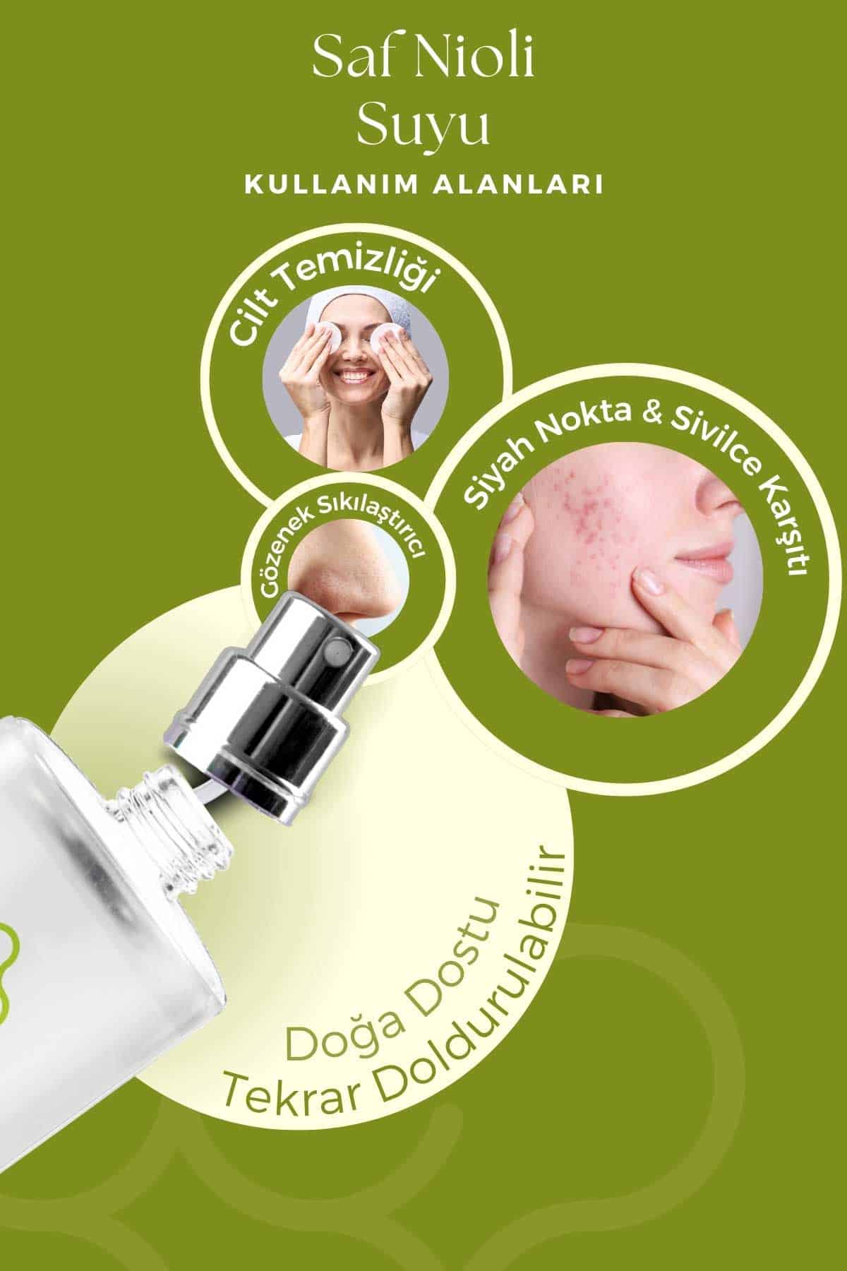 Nioli Suyu Tonik, cildi nemlendirirken gözenekleri arındırır ve sıkılaştırmaya yardımcı olur. Akne ve yağlanma karşıtı formülüyle mat bir görünüm sunar.