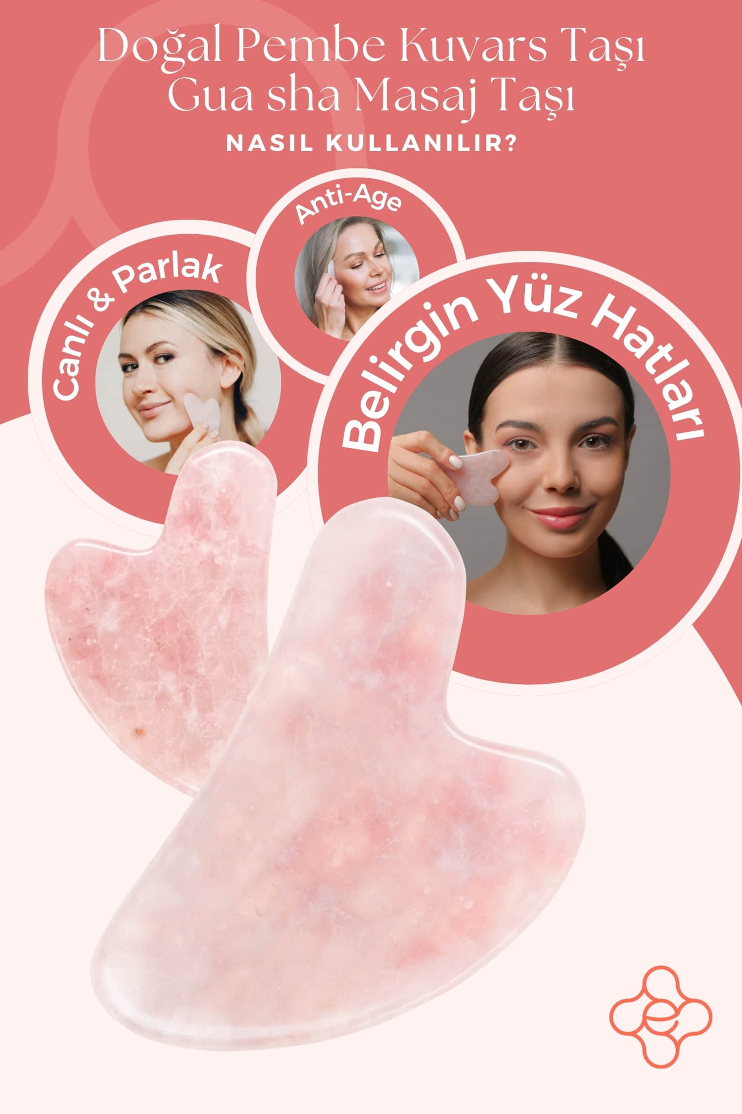 Gua Sha Taşı Pembe Kuvars Yüz Masaj Aleti Doğal Taş Sertifikalı