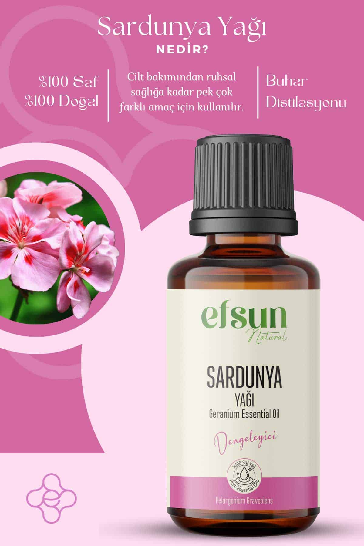 Sardunya Uçucu Yağı, hem aromaterapide hem de doğal cilt bakımında yaygın olarak tercih edilen, çok yönlü etkileriyle öne çıkan bir uçucu yağdır. Çiçeksi ve hafif tatlı kokusuyla zihni yatıştırmaya, duygu durumunu dengelemeye ve stresle baş etmeye yardımcı olabilir. Özellikle gerginlik, anksiyete ve ruhsal dalgalanmalar yaşayanlar için doğal bir destekleyici olarak kullanılabilir.