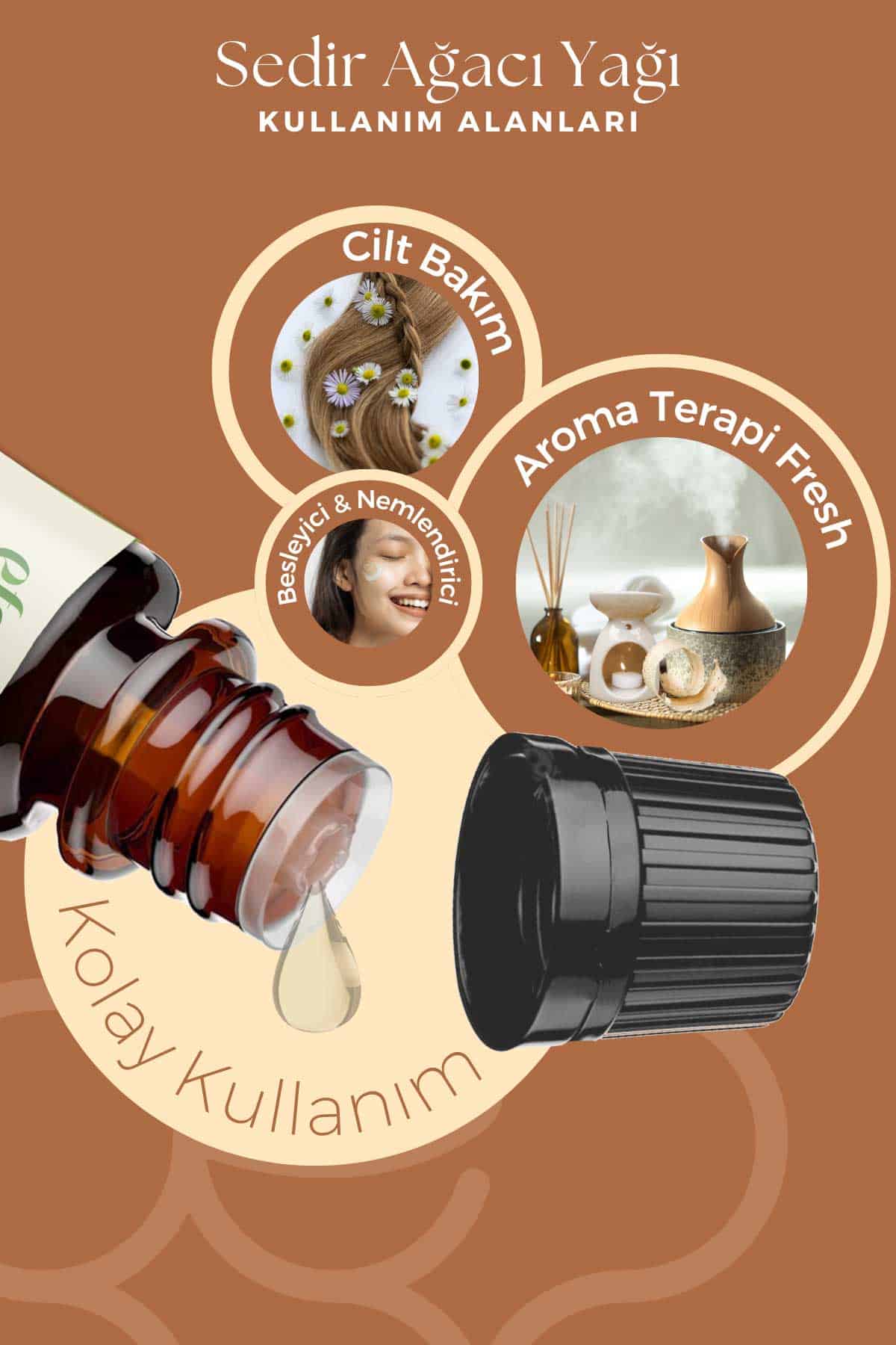 Sedir Ağacı Uçucu Yağı, rahatlatıcı ve dengeleyici kokusuyla aromaterapide sıkça tercih edilir. Cilt bakımında da kullanılan bu doğal yağ, zihinsel ve bedensel dengeyi destekler.